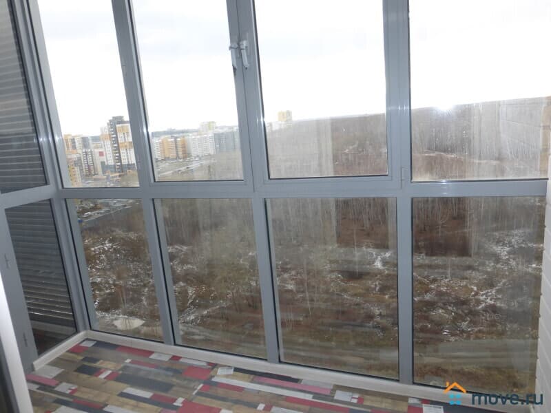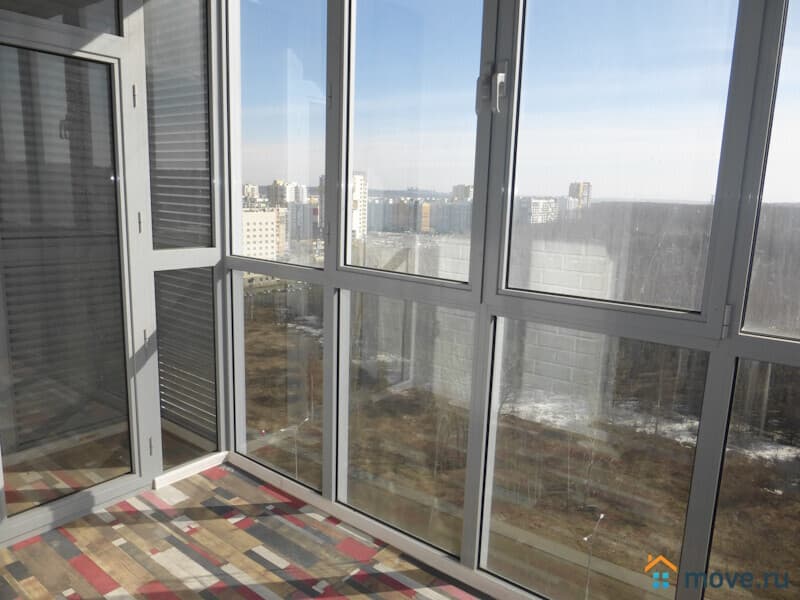 На полу ламинат, натяжные потолки с зональным освещением, пластиковые стеклопакеты, лоджия с панорамным остеклением, санузел совмещенный в кафеле с новой сантехникой, входная железная дверь.
