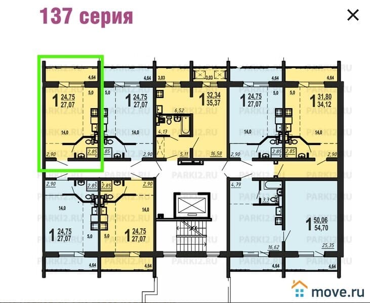 Серия 137, этаж 8/10. Общая площадь 24,7 м2.