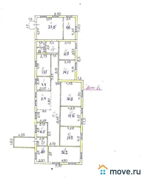 • 15 помещений, высота потолков — 3,5 м